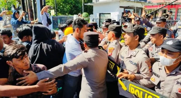 sukabumiNews.id, CIREBON – Aksi unjuk rasa oleh puluhan mahasiswa yang tergabung dalam Aliansi Pemuda dan Mahasiswa Peduli Pendidikan yang digelar di depan kantor cabang Dinas (KCD) Pendidikan wilayah X Jawa Barat pada Kamis (11/7/2024), diwarnai kericuhan.