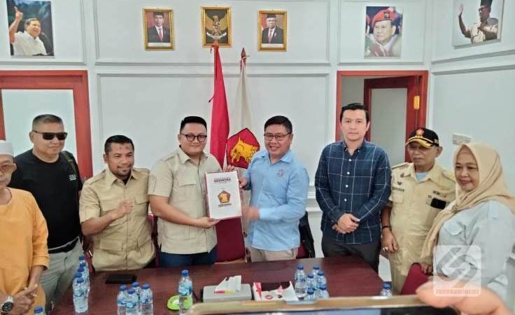 Berkas pendaftaran Dedi R Wijaya diterima oleh Sekretaris DPC Partai Gerindra Kota Sukabumi, Agung Virgiawan Somantri di Sekretariat DPC Gerindra Kota Sukabumi, Jum’at (31/5/2024).