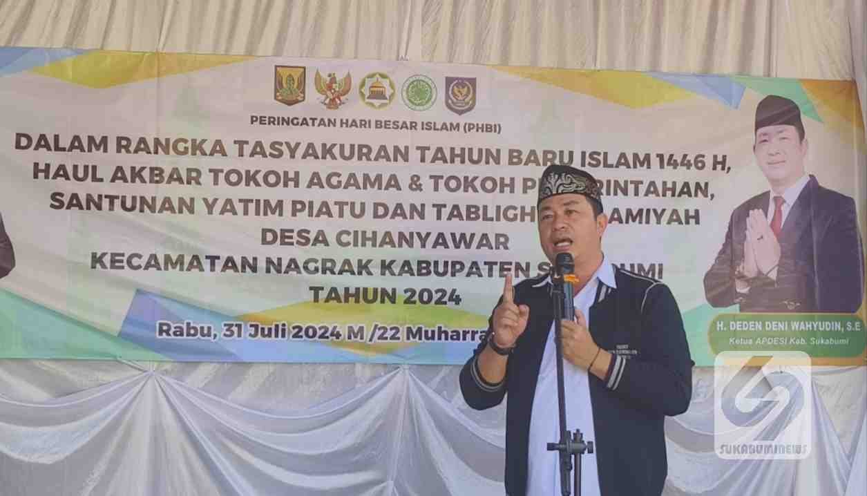 sukabumiNews, KAB SUKABUMI – Ketua Apdesi Kabupaten Sukabumi, Deden Deni Wahyudin menghadiri acara tasyakuran Tahun Baru Islam 1446 Hijriyah, Haul Akbar Tokoh Agama dan Tokoh Pemerintahan di Kampung Cihanyawar, Kecamatan Nagrak Kabupaten Sukabumi.