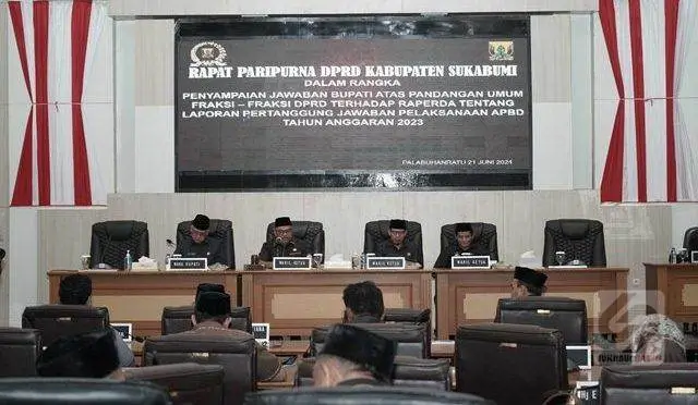sukabumiNews.id, KAB SUKABUMI – DPRD Kabupaten Sukabumi melaksanakan Rapat Paripurna ke-11 (Rapurna kesebelas) dengan agenda penyampaian Jawaban Bupati atas pandangan umum fraksi-fraksi DPRD terhadap Raperda tentang laporan Pertanggungjawaban Pelaksanaan APBD Tahun Anggaran 2023.