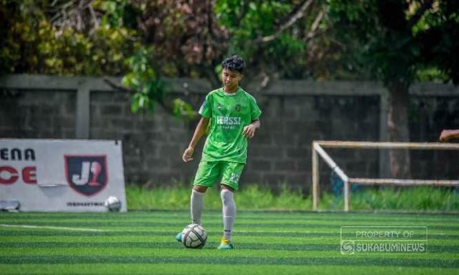Muhammad Sheva Rizky (tegah) turut menjadi bagian tim inti dari Persatuan Sepakbola Seluruh Indonesia (PERSSI) Kota Sukabumi dalam Piala Soeratin U-17 Asosiasi PSSI tingkat Jawa Barat tahun 2023. (Ist)